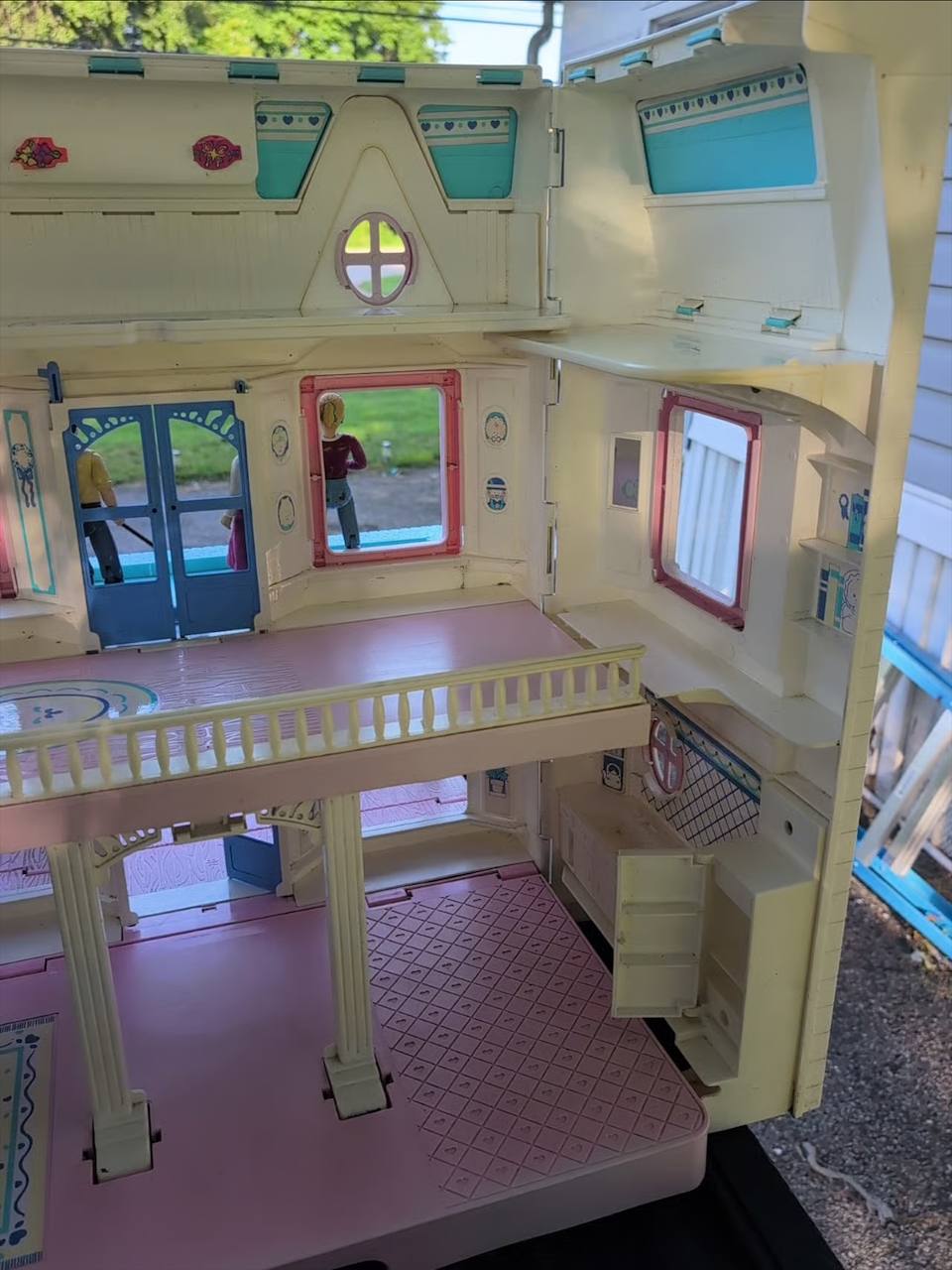 Vintage 1993 Fisher Price Loving Family Dream Folding Doll House + Accessories Is missing 1 front door See pictures includes everything pictured including house, 7 figures and a ton of furniture!